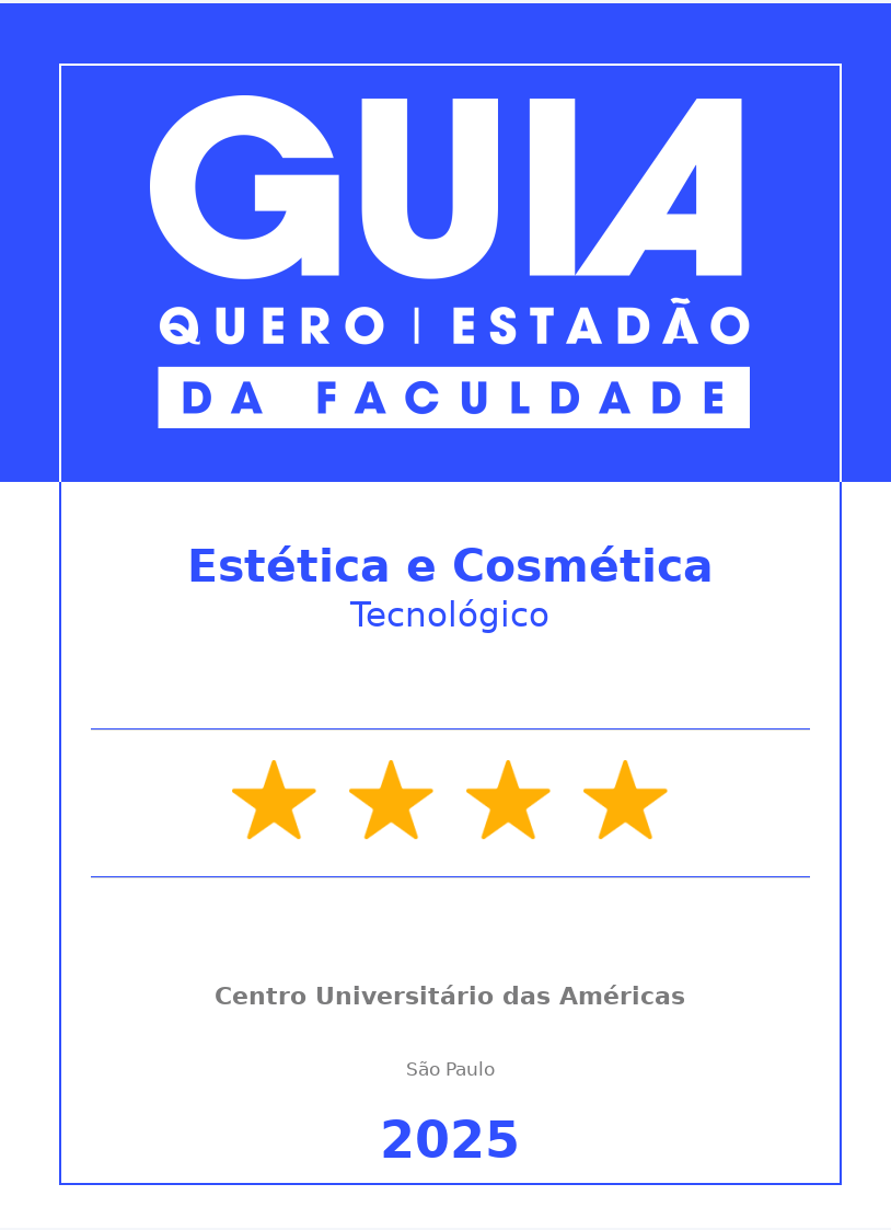 O curso de Estética e Cosmética prepara os alunos para se tornarem profissionais competentes e éticos, com ampla empregabilidade e diversidade de áreas e empresas onde poderão atuar profissionalmente.